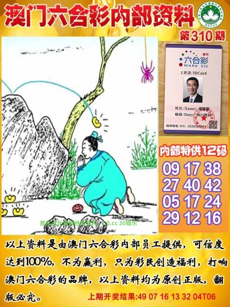 310期 六尾中特╠124567尾╣开:虎16准 |